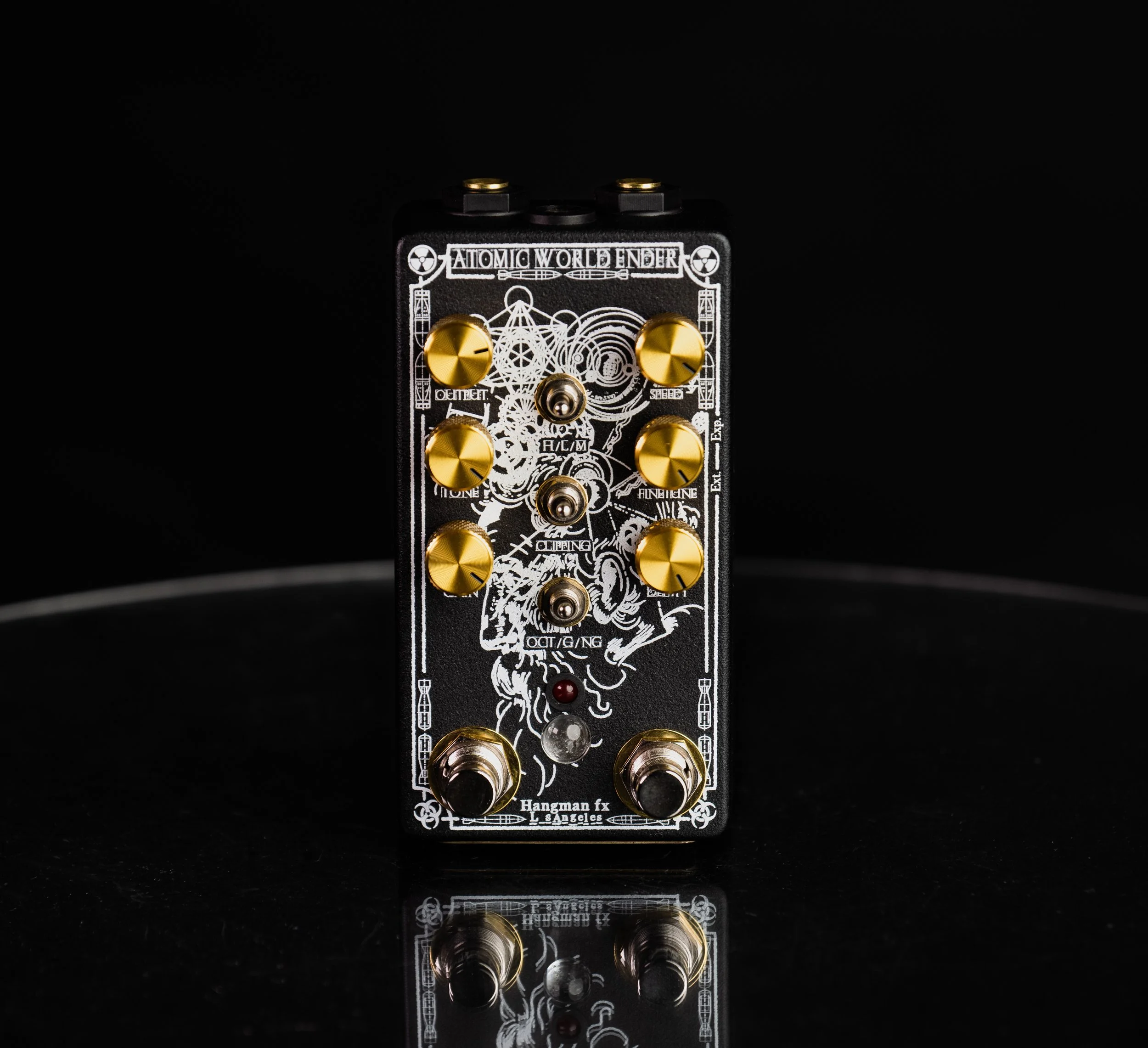The DAGG’R lives inside a durable yet beautiful sand-texture enclosure with pure aluminum knobs and gold side jacks. For the first 50 units, it includes a pure brass front serial number plate & custom LED lenses containing fragments of rare artifacts inside related to the pedal’s name. Inside the LED of the first 50 DAGG’Rs are fragments from the blade of an authentic WWII military issue knife (RH-36). Soldiers used their knives for tons of different things like opening food, digging trenches or shaving. Some would also collect enemy knives as souvenirs such as German Luftwaffe gravity knives or Japanese bayonets. It’s possible, not probable, but possible this knife killed a Nazi. It doesn’t get more punk rock than that.