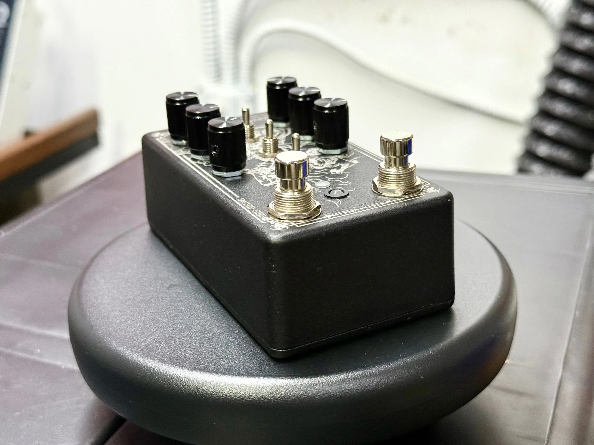 The Luma Express also has a large aluminum knob that is not only used to set the expression range, but using the “Mode” switch, it can also be used in place of the light-sensitive expression with your foot or fingers. The “Resistance” switch allows you to change the resistance range to make the Luma Express more compatible with more third party pedals (& an interior switch allows you to swap the Tip & Ring in case you’re pairing it with an older pedal). Compatible with all Hangman fx pedals as well as most other pedals.